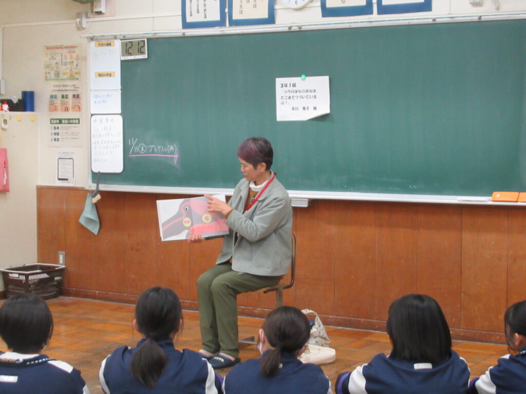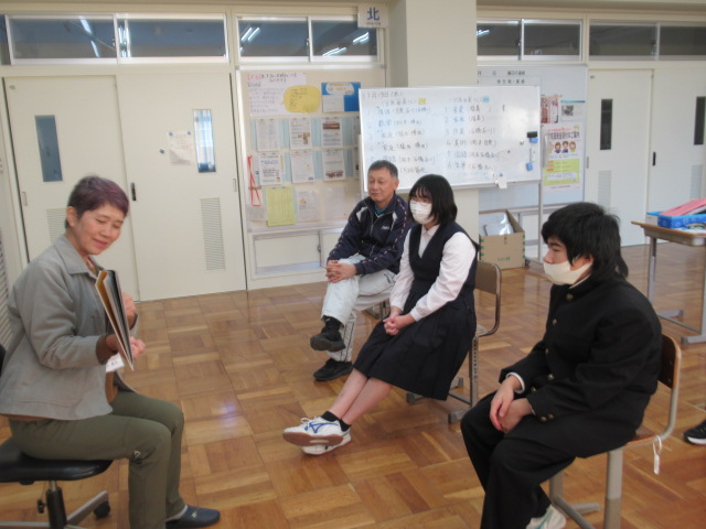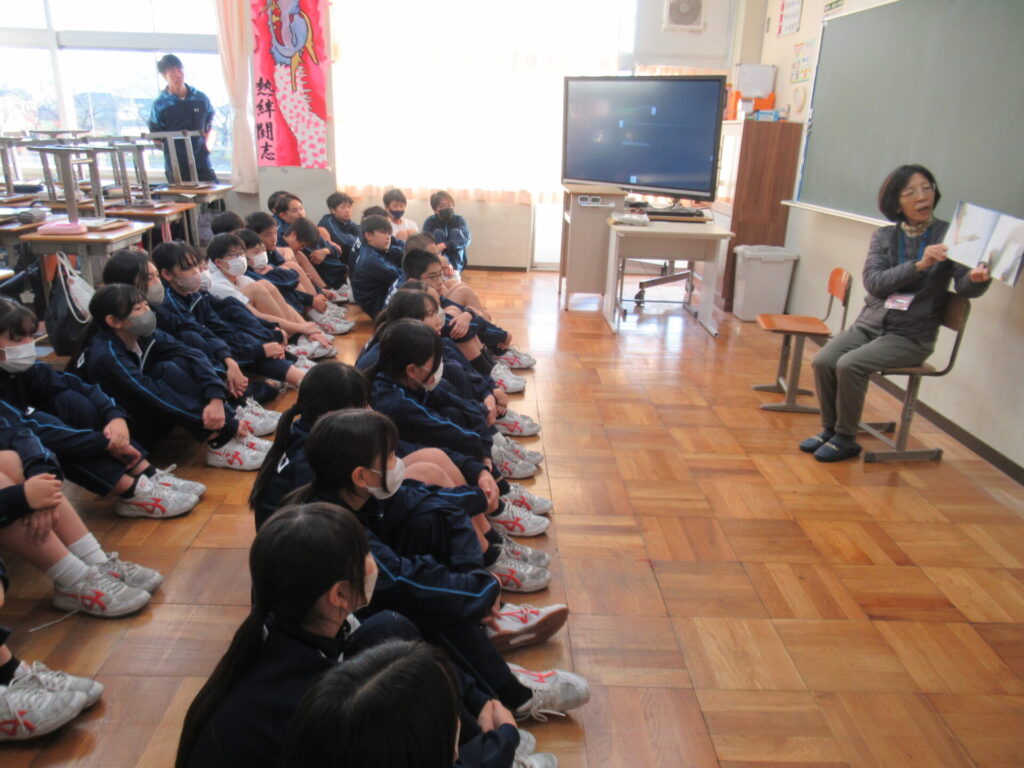アニマシオン(読み聞かせ) 2025年11月12日 最終更新日時 : 2025年11月17日 kumagaya_edit 11月11,12日にかけて、今年度2回目のアニマシオンを実施しました。地域の朗読研究会「ピース」のみなさまの朗読に、生徒は真剣に聴き入っていました。
