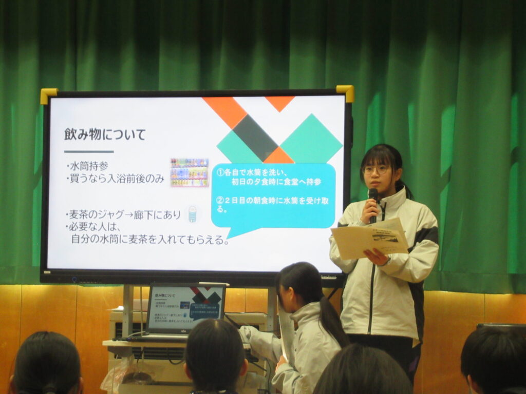 スキー林間学校説明会 2026年1月21日 最終更新日時 : 2026年1月23日 kumagaya_edit 本日の総合の時間は、2月12・13日に計画されているスキー林間学校の説明会でした。各部の代表者から、当日を迎えるにあたり、行程の確認、諸注意の確認等を行いました。ユーモアな班名の発表も行い、楽しい時間になりました。