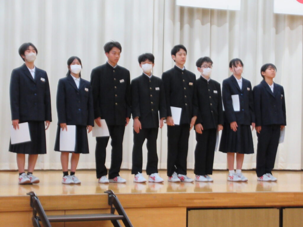 学級委員任命式 2026年4月14日 最終更新日時 : 2026年4月14日 kumagaya_contribute 令和8年度の前期学級委員の任命式が行われました。どのクラスの学級委員も大きな声で返事をし、校長先生から任命証を受け取りました。半年間よろしくお願いします。