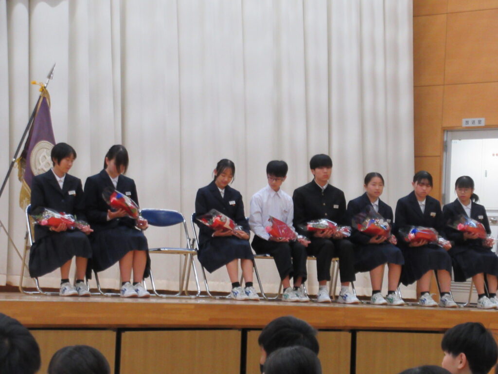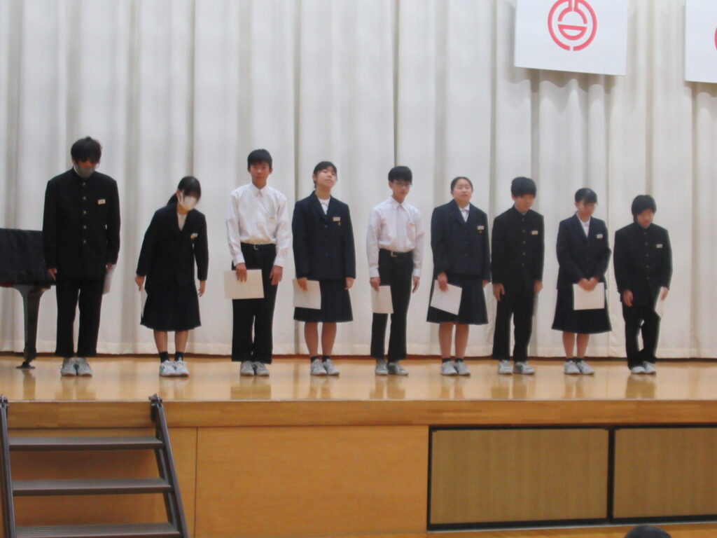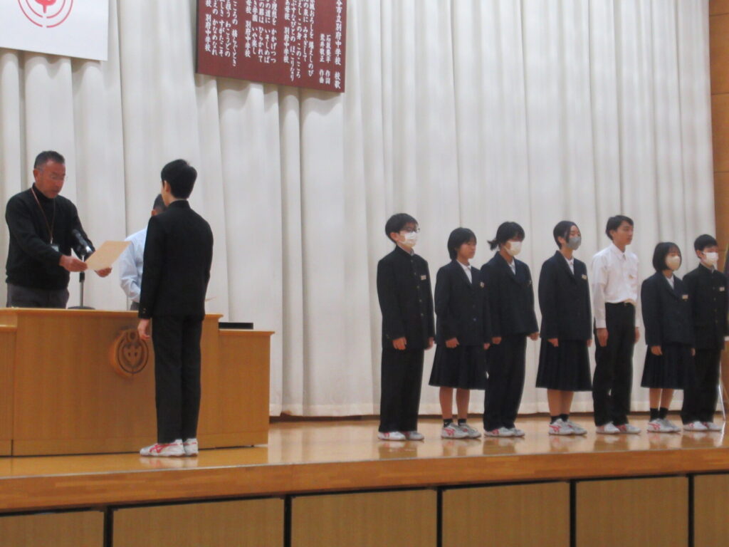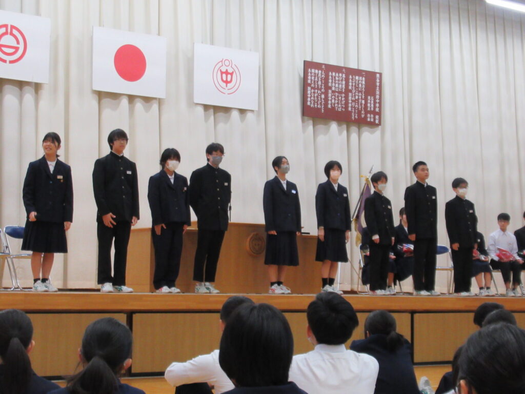 後期学級委員任命式及び生徒会役員引継ぎ式 2025年10月29日 最終更新日時 : 2025年10月29日 kumagaya_edit 後期の学級委員任命と、生徒会の引継ぎを行いました。学級委員はクラスのリーダーとして、生徒会役員は学校のリーダーとして頑張ってください!旧生徒会役員のみなさん、今までありがとうございました。