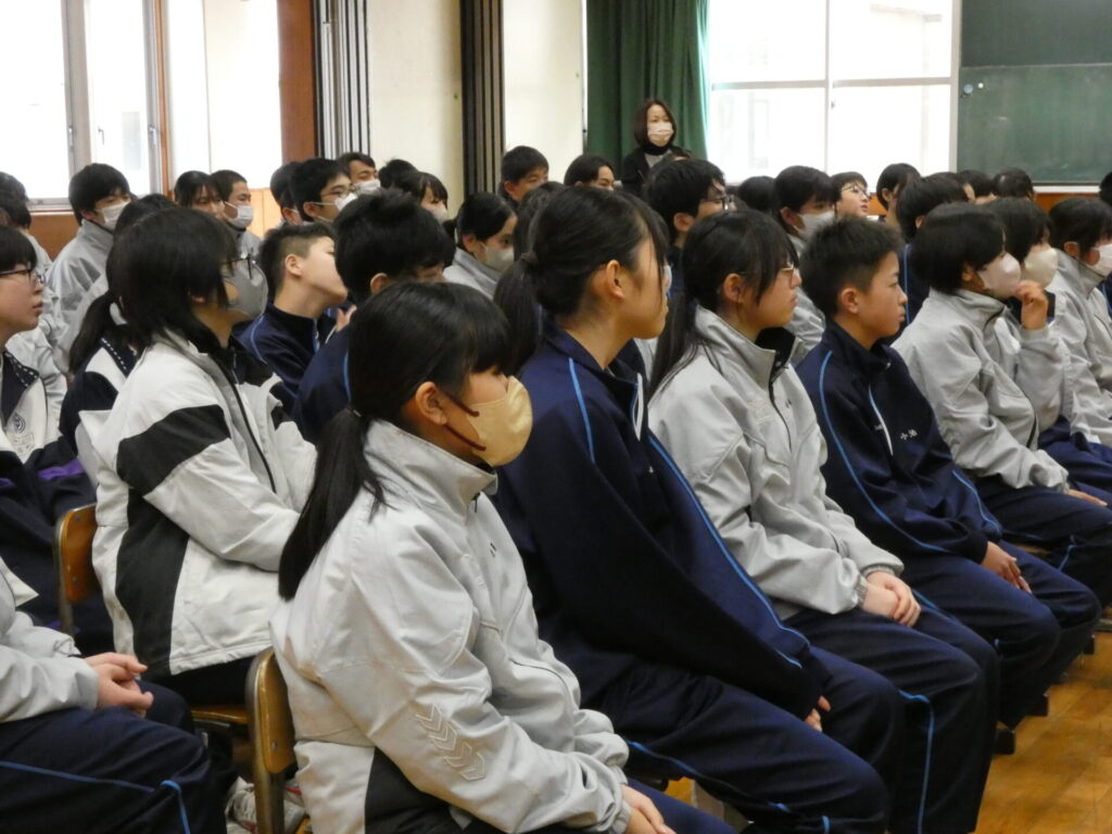 性教育講演会 2026年1月29日 最終更新日時 : 2026年1月30日 kumagaya_edit 中島助産院の中島佳子先生をお招きし、二次性徴、生命の誕生、命の尊さなどについてご講演いただきました。真剣なまなざしで耳を傾ける姿から、自分事としてしっかり学ぶことができていたように感じます。
