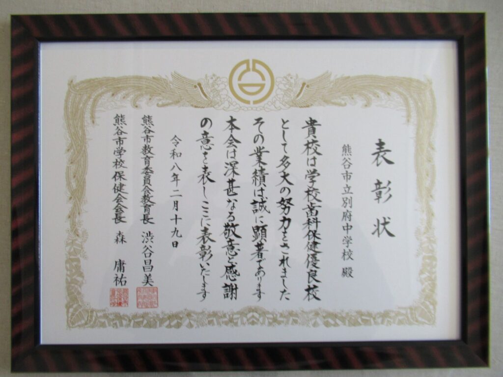 歯科保健表彰 2026年2月20日 最終更新日時 : 2026年2月20日 kumagaya_edit 熊谷市学校保健会より、口腔衛生の取り組みについて表彰されました。 今後も、虫歯予防へのご協力をお願いします。
