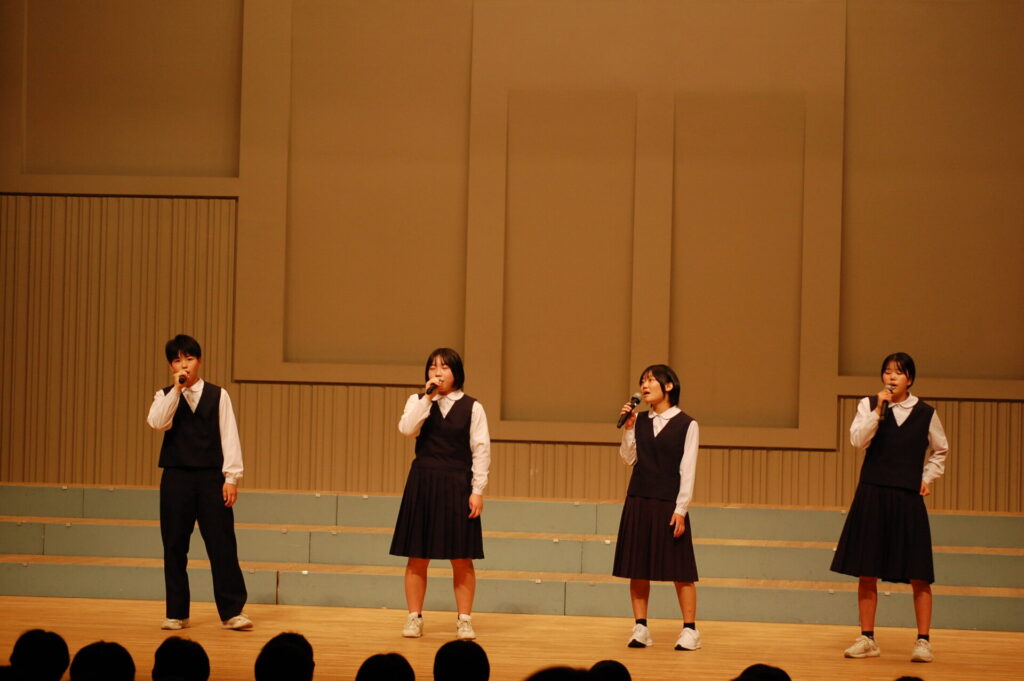 『輝けこの場所この仲間~我らの想いが音となる~』のスローガンのもと、午前の合唱コンクールではどのクラスも積み重ねた練習の成果を響かせ、午後は優秀作品発表や英語弁論、ビブリオバトル、特技発表、有志合唱などの文化的発表を行いました。