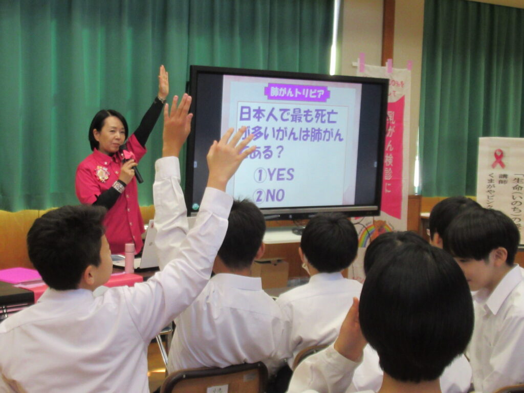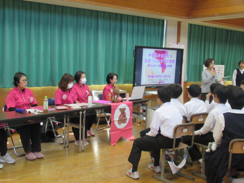 生命(いのち)の授業(1年生) 2025年11月17日 最終更新日時 : 2025年11月18日 kumagaya_edit NPO法人くまがやピンクリボンの会の方々をお招きし、がん予防や検診の重要性などを啓発する「生命(いのち)の授業」を行いました。日本人の死亡原因第1位であるがんの怖さを通して、かけがえのない生命について真剣に考える時間となりました。
