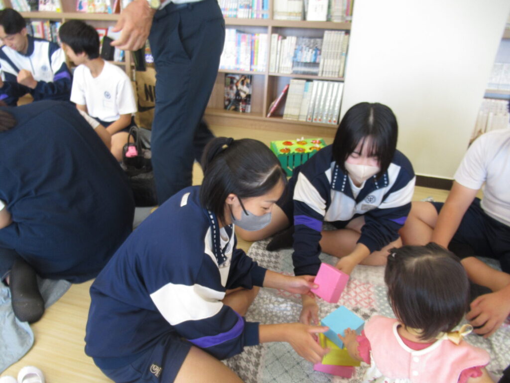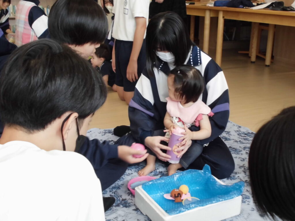 赤ちゃんとのふれあい体験 2025年9月26日 最終更新日時 : 2025年9月30日 kumagaya_edit 1~3歳の幼児と保護者の方を招き、ふれあい体験をさせていただきました。授業で製作したおもちゃを使って楽しくコミュニケーションがとれました。