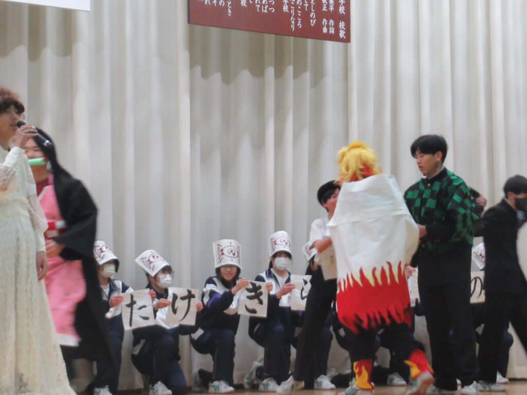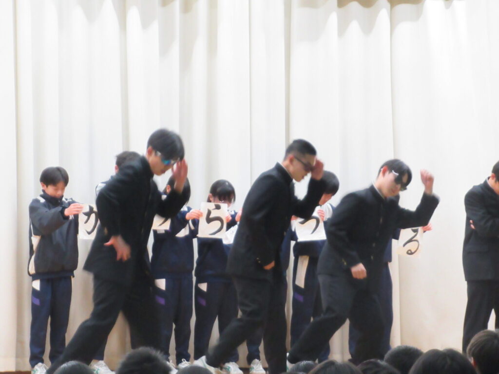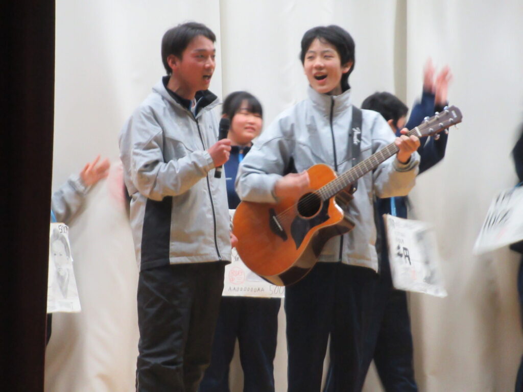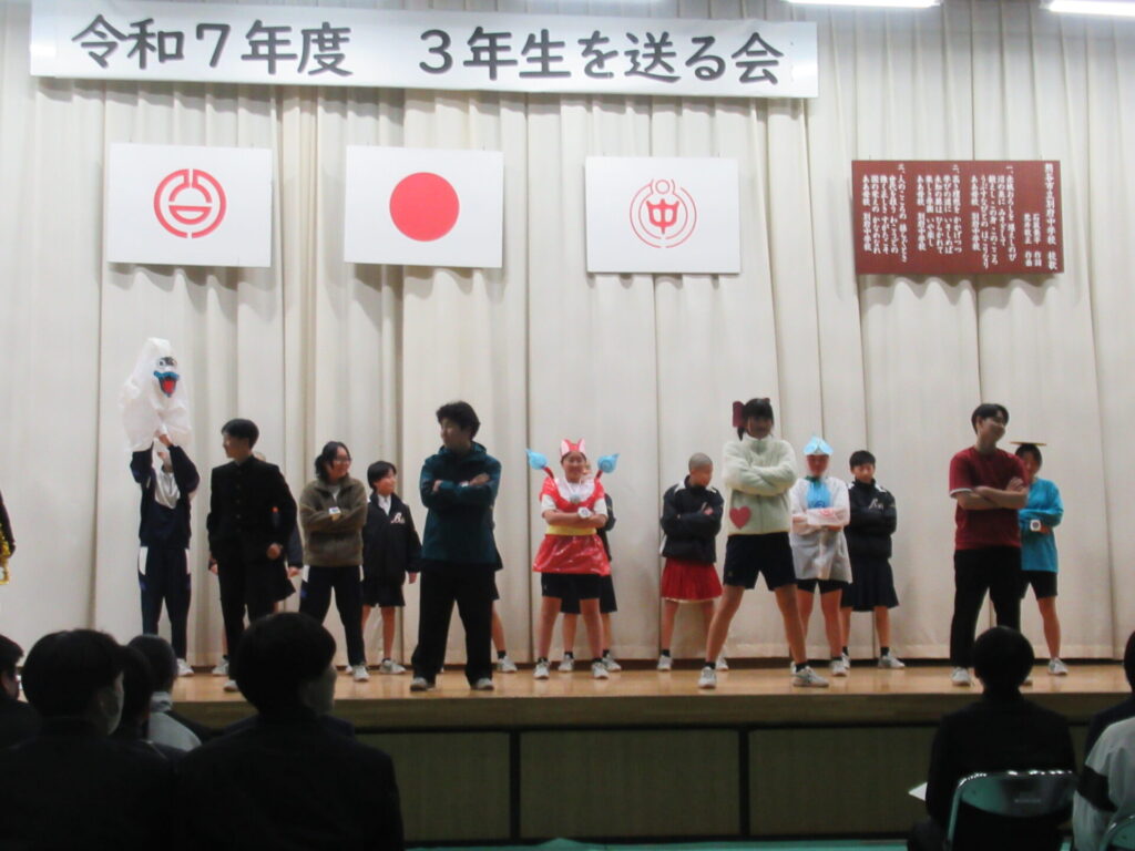 3年生を送る会 2026年3月5日 最終更新日時 : 2026年3月6日 kumagaya_edit もうすぐ卒業する3年生のために、1・2年生が一生懸命準備しました。後輩たちの出し物、思い出のスライド、お世話に先生方のビデオレターに加え、3年生からも素敵なエンターテインメントを提供してもらいました。卒業前の良い思い出になりました。